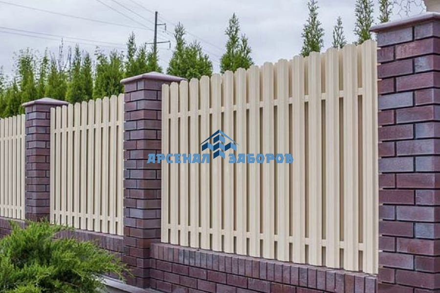 Забор из евроштакетника с кирпичными столбами