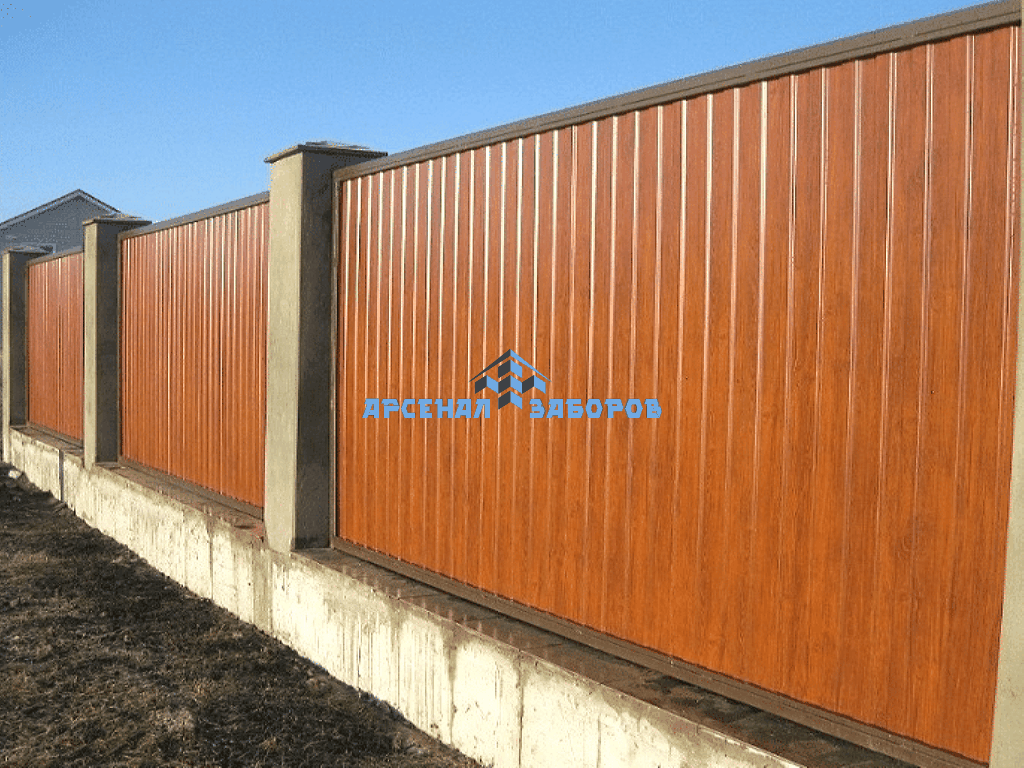Конструкция забора из профлиста на ленточном фундаменте и с кирпичными столбами