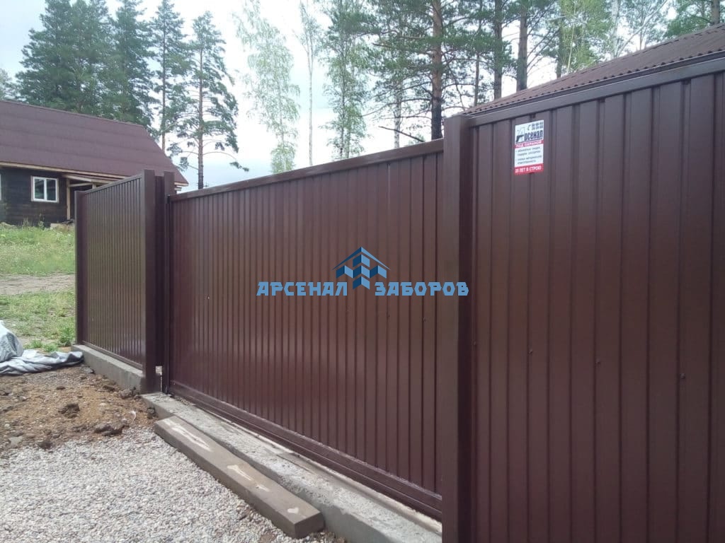 Конструкция забора из профлиста с забивными столбами