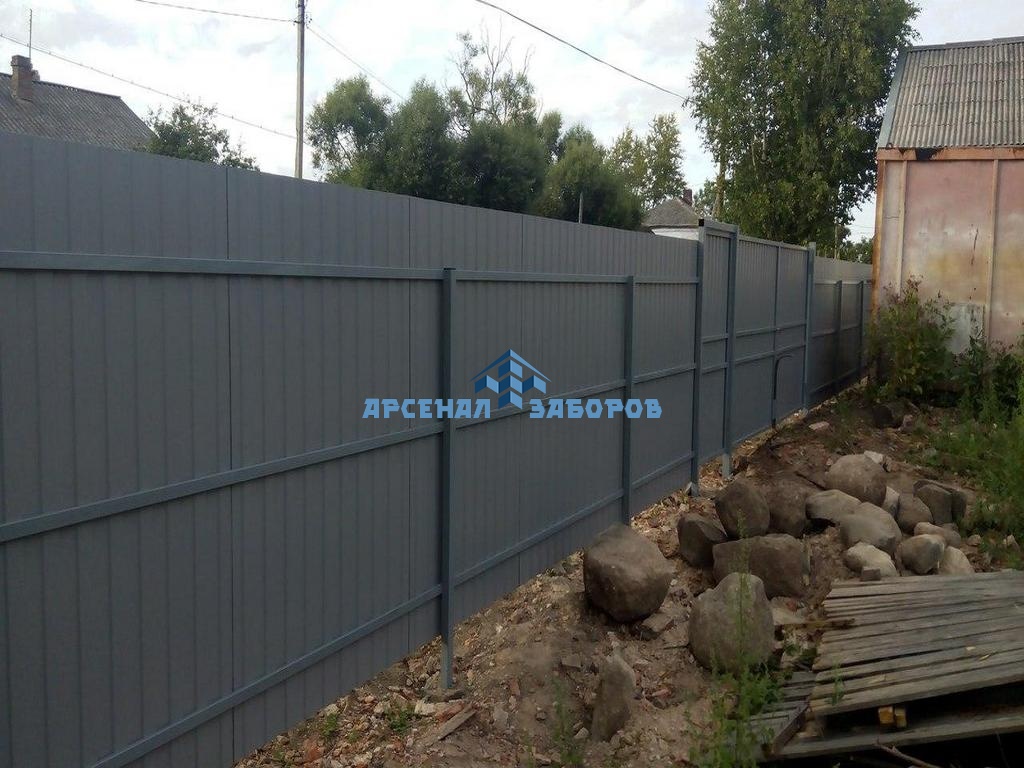 Конструкция забора из профлиста с забивными столбами