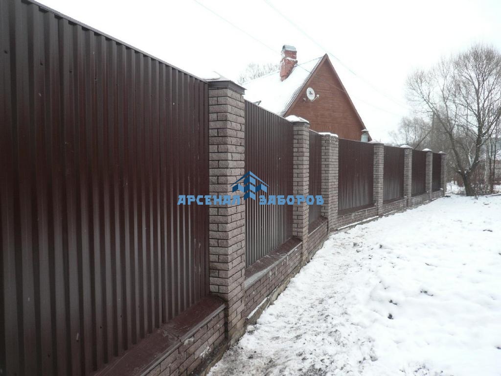 Конструкция забора из профлиста на ленточном фундаменте и с кирпичными столбами