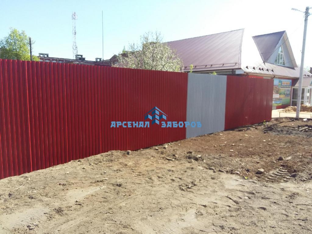 Конструкция забора из профлиста на ленточном фундаменте и с кирпичными столбами